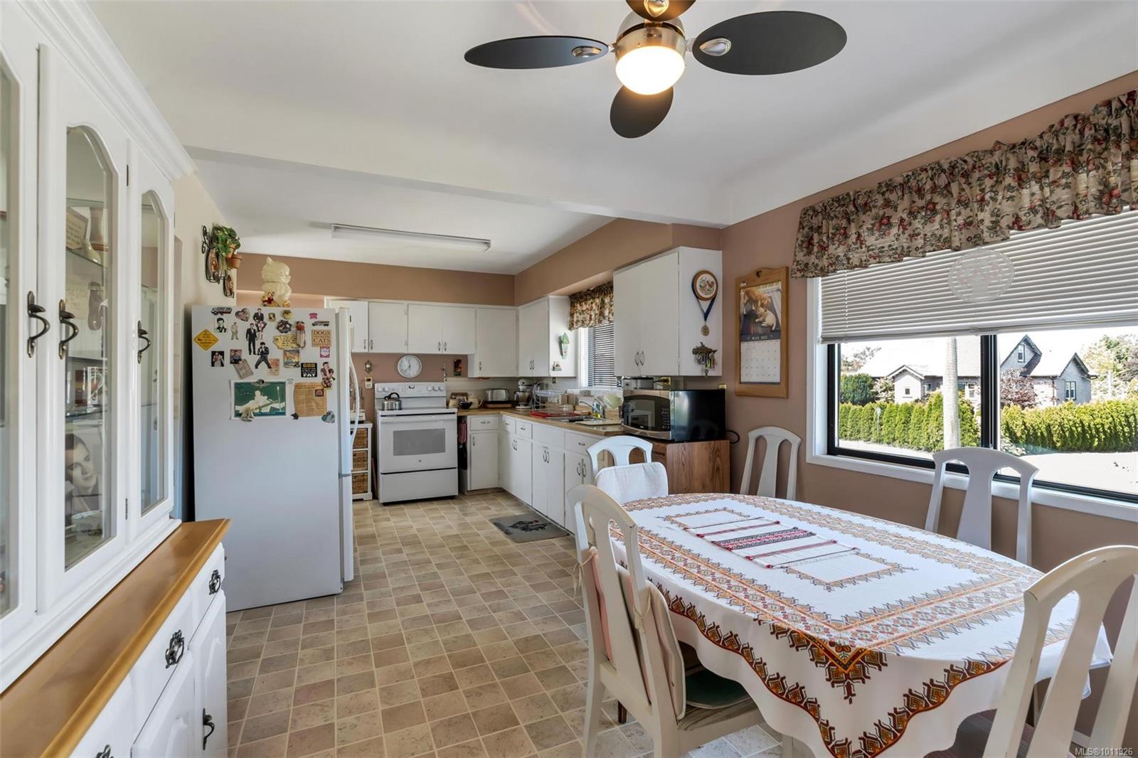 Welcome to 3245 Albion Road in beautiful Saanich, BC—offered for the first time in 36 years. This lovingly maintained 5-bedroom, 2-bathroom home sits on a generous 8,523 sq.ft. lot and includes a 500 sq.ft. detached double garage/workshop with a separate subpanel. The main floor features a traditional layout with a spacious living room, wood-burning fireplace, coved ceilings, and a large picture window that fills the space with natural light. The dining room, filled with warmth and memories, flows into the original yet meticulously maintained kitchen with direct access to the fully fenced, south-facing backyard—a gardener’s dream with fruit trees, a greenhouse area, and plenty of space for kids or pets & includes RV or boat parking The main level includes three bedrooms, including a spacious primary with a private deck. Downstairs offers a separate 2-bedroom suite with 7’4” ceilings, a full kitchen, & large living space. Centrally located and truly cherished—this is a rare opportunity.