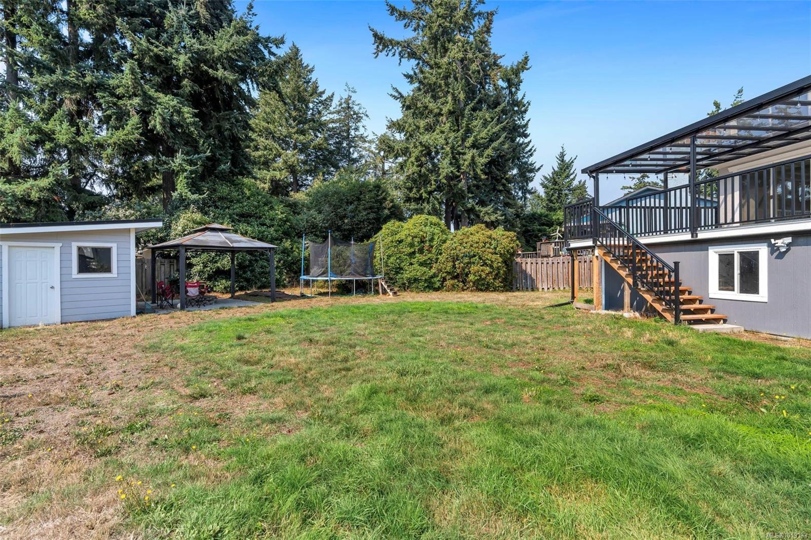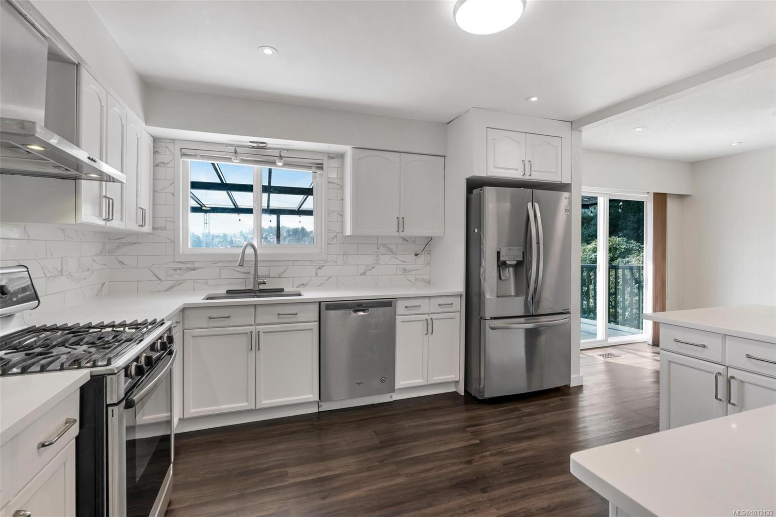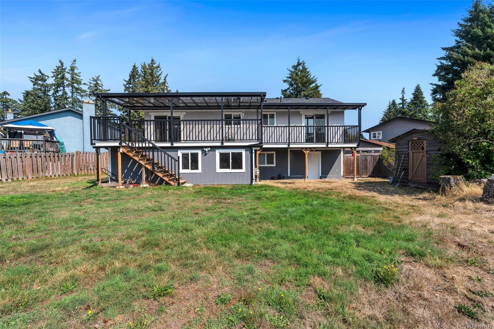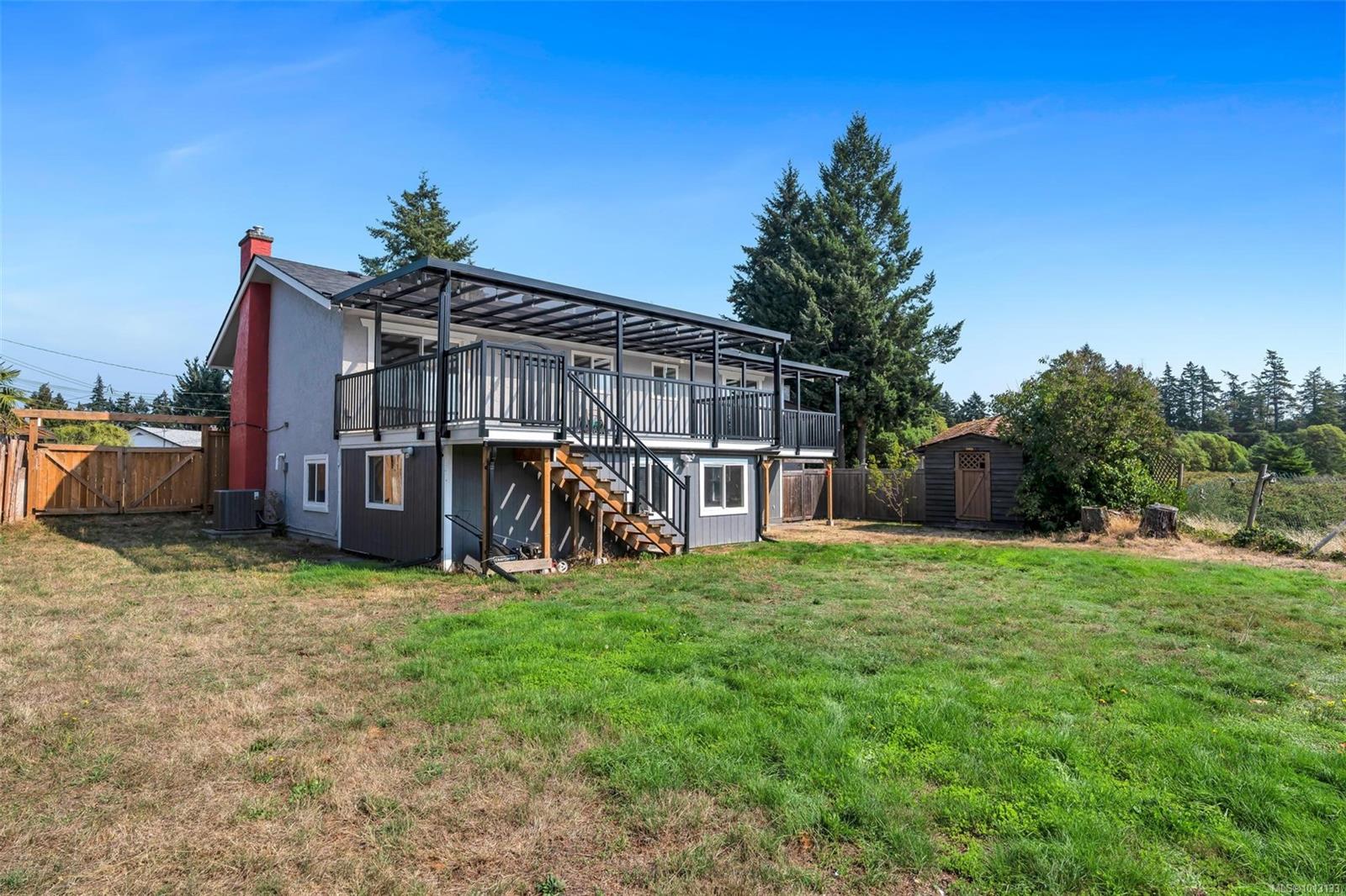 Welcome to 621 Eiderwood Place, an exceptional family home nestled in a quiet Colwood cul-de-sac. This 4-bedroom, 3-bathroom residence has been extensively updated and sits on a sprawling 10,146 sq. ft. lot, offering the perfect blend of comfort, functionality, and outdoor living. The main floor features a traditional layout with a spacious living room highlighted by a natural gas fireplace and a large picture window that floods the space with natural light. The kitchen has been tastefully upgraded with oak cabinets, quartz countertops, ceramic tile backsplash, stainless steel appliances, and an island that opens directly to the bright dining area. From here, step outside to a 393 sq. ft. covered deck—an inviting outdoor retreat that can be enjoyed year-round. Overlooking the fully fenced, south-facing backyard, this private sanctuary includes two sheds, a firepit area, RV parking, and plenty of green space for kids and pets. There’s also handy storage tucked beneath the deck. Back inside, the main level offers three bedrooms and two bathrooms, including a primary suite with a luxurious ensuite showcasing a walk-in shower with rain head and body sprays. Two additional bedrooms share a beautifully updated main bath. The lower level provides excellent versatility with a self-contained one-bedroom suite complete with a full kitchen, large living room, separate laundry, and its own entrance—ideal for extended family or as a mortgage helper. Recent updates bring peace of mind, including a new heat pump, roof, gutters, furnace, hot water tank, exterior paint, and a gas fireplace within the past five years. With its functional upgrades, spacious layout, and private outdoor spaces, this move-in ready home is the full package in a highly desirable family-friendly neighbourhood.
