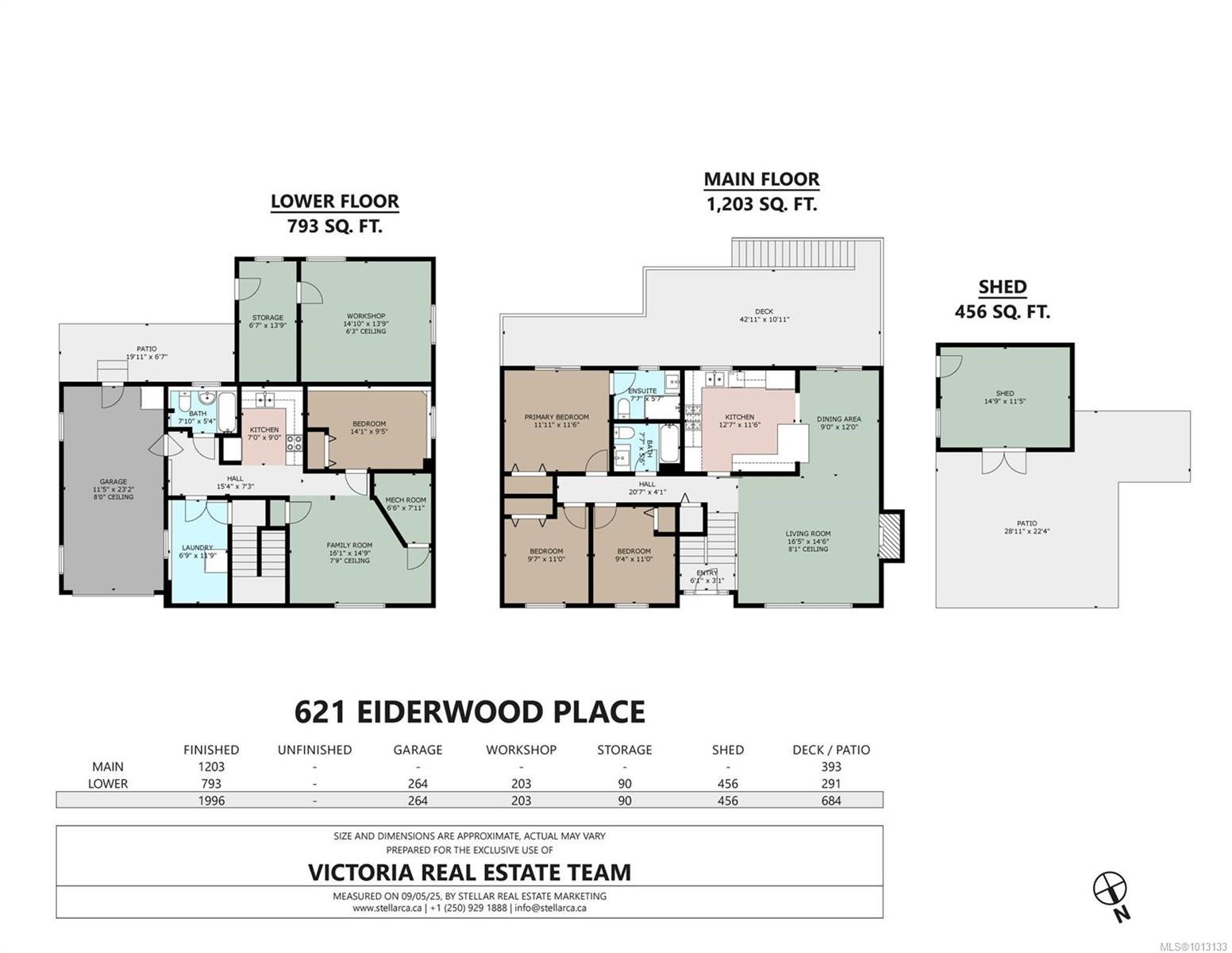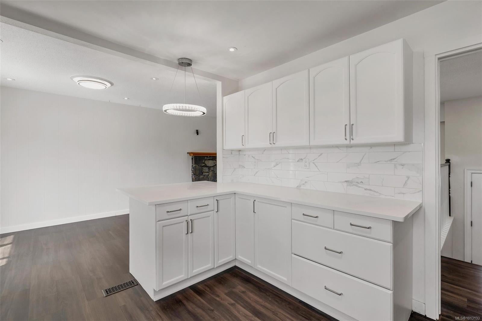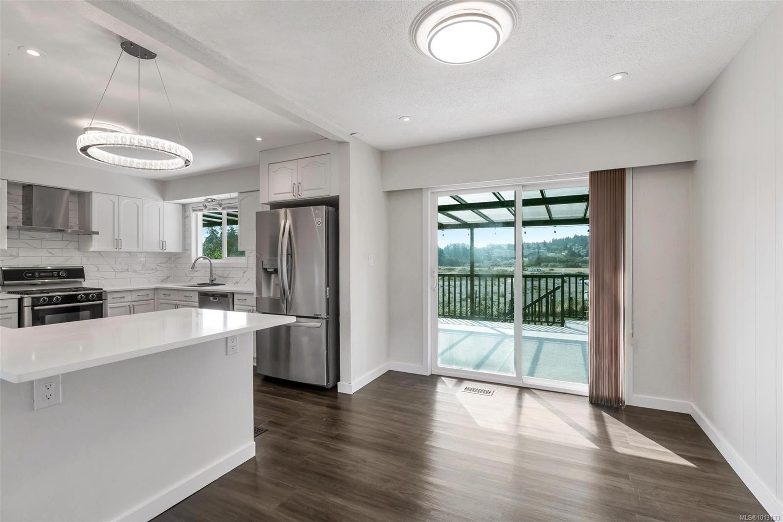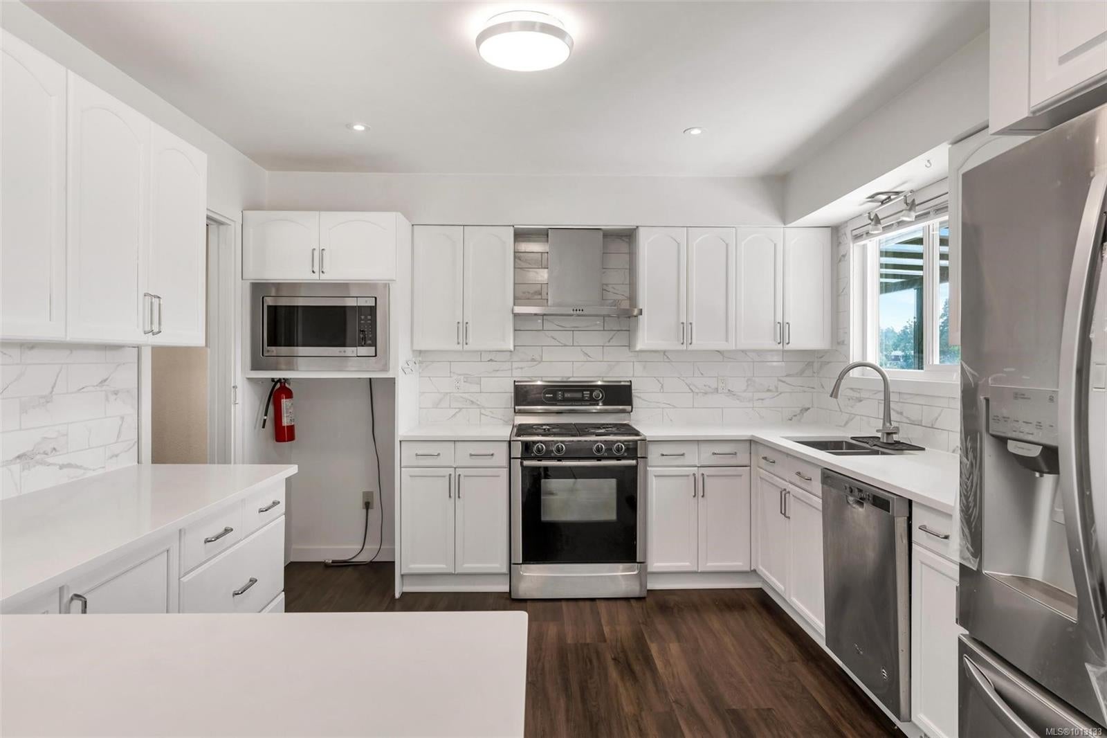 Welcome to 621 Eiderwood Place, an exceptional family home nestled in a quiet Colwood cul-de-sac. This 4-bedroom, 3-bathroom residence has been extensively updated and sits on a sprawling 10,146 sq. ft. lot, offering the perfect blend of comfort, functionality, and outdoor living. The main floor features a traditional layout with a spacious living room highlighted by a natural gas fireplace and a large picture window that floods the space with natural light. The kitchen has been tastefully upgraded with oak cabinets, quartz countertops, ceramic tile backsplash, stainless steel appliances, and an island that opens directly to the bright dining area. From here, step outside to a 393 sq. ft. covered deck—an inviting outdoor retreat that can be enjoyed year-round. Overlooking the fully fenced, south-facing backyard, this private sanctuary includes two sheds, a firepit area, RV parking, and plenty of green space for kids and pets. There’s also handy storage tucked beneath the deck. Back inside, the main level offers three bedrooms and two bathrooms, including a primary suite with a luxurious ensuite showcasing a walk-in shower with rain head and body sprays. Two additional bedrooms share a beautifully updated main bath. The lower level provides excellent versatility with a self-contained one-bedroom suite complete with a full kitchen, large living room, separate laundry, and its own entrance—ideal for extended family or as a mortgage helper. Recent updates bring peace of mind, including a new heat pump, roof, gutters, furnace, hot water tank, exterior paint, and a gas fireplace within the past five years. With its functional upgrades, spacious layout, and private outdoor spaces, this move-in ready home is the full package in a highly desirable family-friendly neighbourhood.