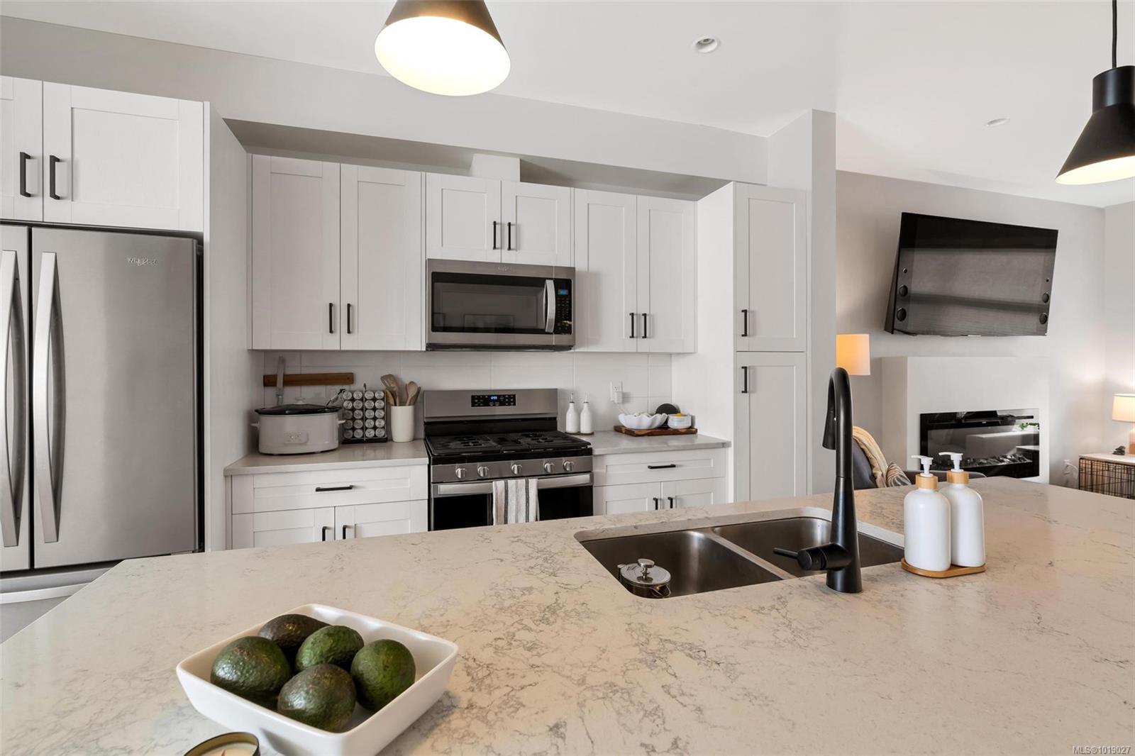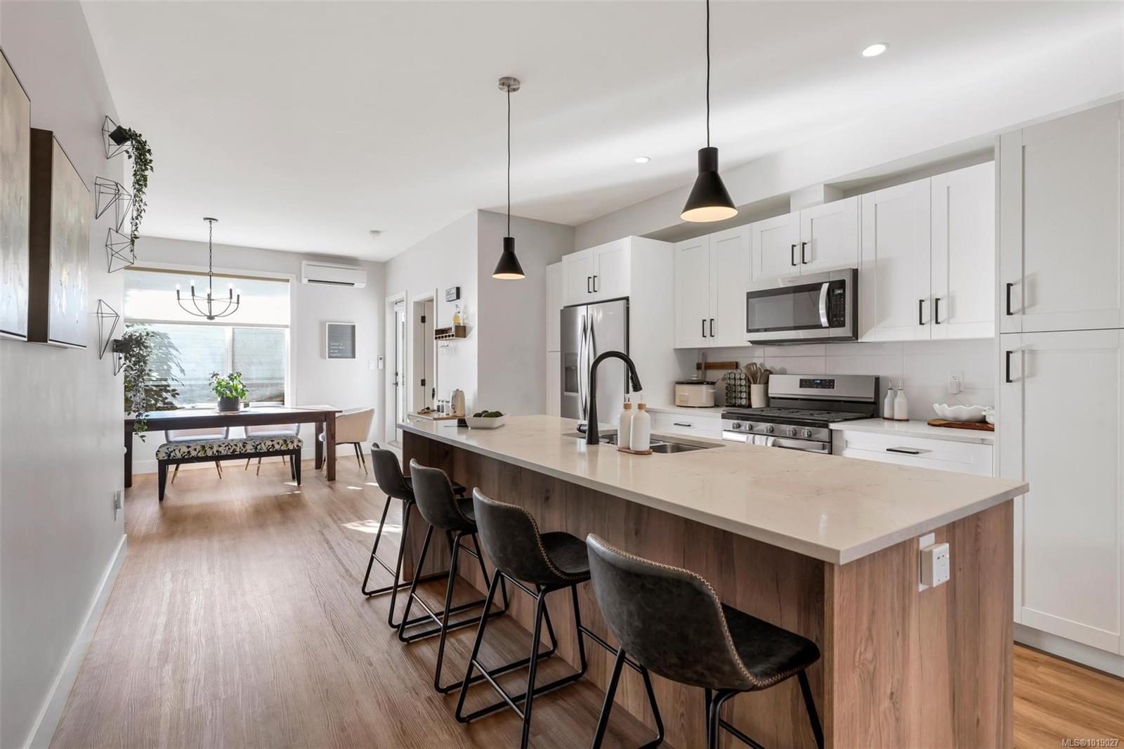 This well designed 1450 sqft home offers 3 bedrooms on the upper level, 3 bathrooms in total, and an oversized 532 sqft garage. The main floor has a bright, open concept layout with a chef inspired kitchen at the centre of the space. It features stainless appliances with a gas range, soft close drawers, a floor to ceiling pantry, tile backsplash and a massive island that connects the dining and living rooms. Enjoy 9ft ceilings, an electric fireplace, cordless blinds, air conditioning, on demand hot water, and quartz countertops throughout the home. Upstairs, the primary bedroom includes a four piece ensuite and a walk-in closet. Outside, you’ll find a south facing deck and a fully fenced yard — perfect for kids, pets or entertaining. The location is incredibly convenient and close to Red Barn Market, Olympic View golf course and access to the Galloping Goose Trail. This property has so many thoughtful finishing touches, plus comes with the 2-5-10 warranty. Pets with no weight restriction and rentals are allowed.
