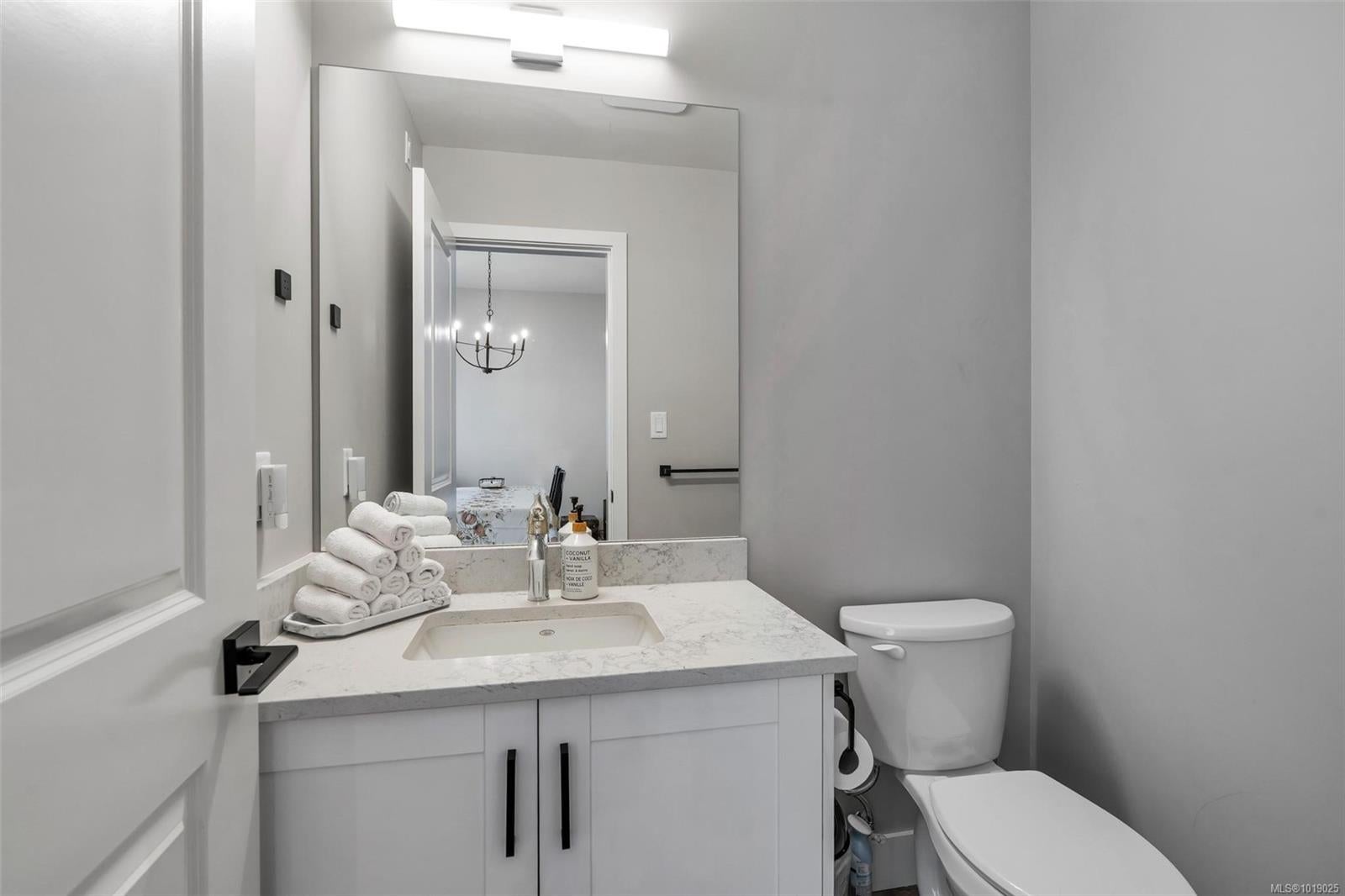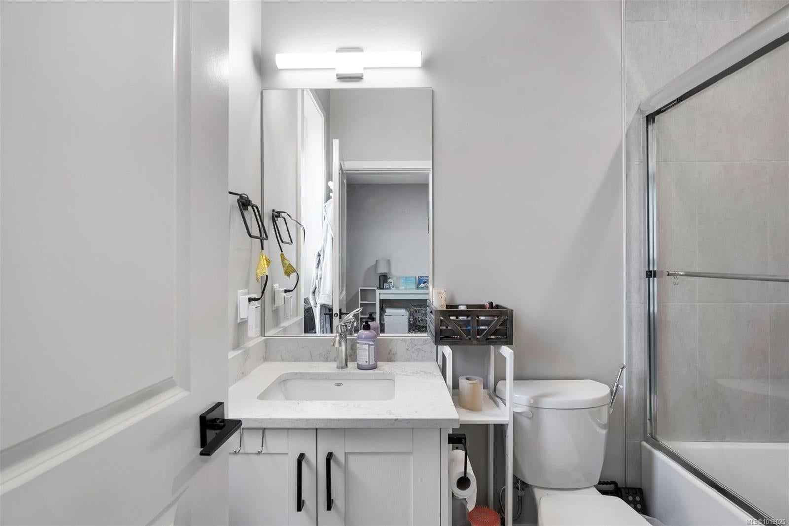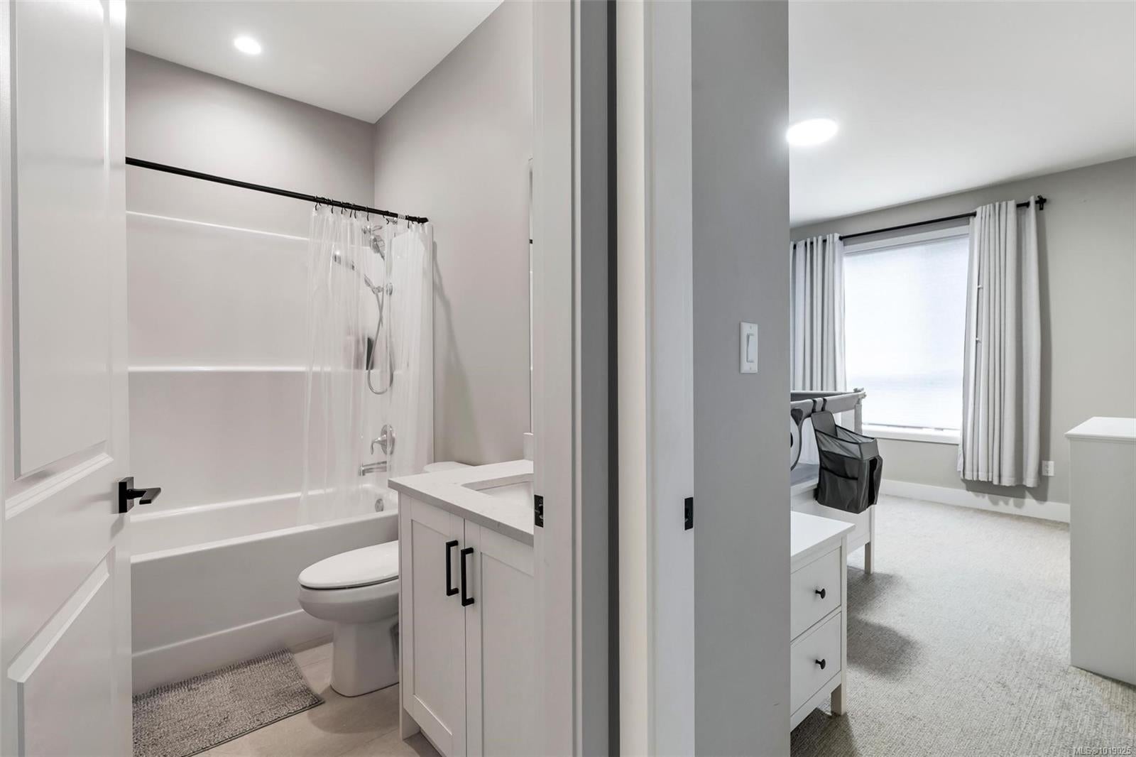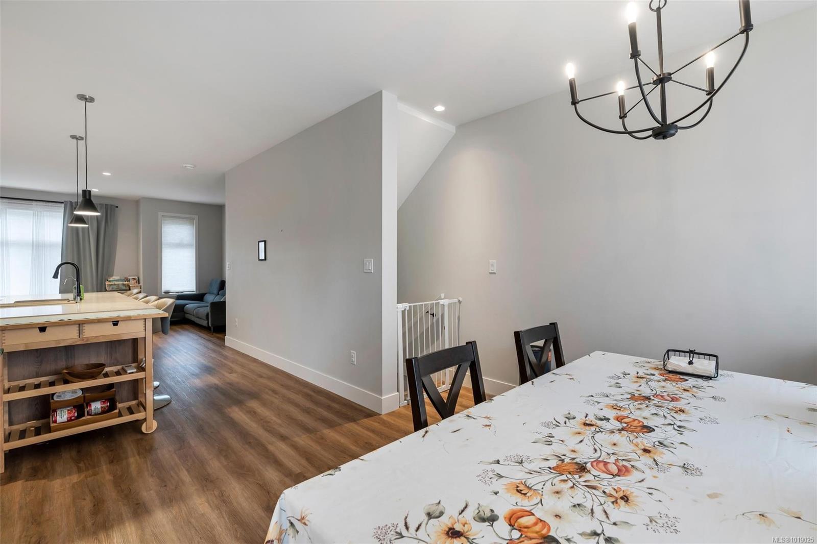 The best floor plan currently available in this strata. Beautiful 2000+ sqft property has 3 bedrooms on the top floor, 3 bathrooms throughout and a massive 497 sq ft double garage. The open concept floor plan features a chef's kitchen in the heart of the room with stainless appliances including a gas range, soft close drawers, floor to ceiling pantry, tile backsplash, and massive island that sits between the living and dining rooms. The home has 9ft ceilings, AC, On demand hot water, and quartz countertops throughout. A fully fenced backyard, sunny and with a gas bbq or gas heater bib is accessed directly off the dining room. The primary bedroom has a four piece ensuite and a walk-in closet. This property offers everything you’ll want and is located in an accessible area close to Red Barn Market, Olympic View golf course, The Beachlands, the Galloping Goose! Remainder of 2-5-10 year warranty. Two pets no weight restrictions and rentals allowed. Essentially still new and with low strata fees, this listing is a winner that deserves your attention if the West Shore lifestyle in this idyllic location is calling you.
