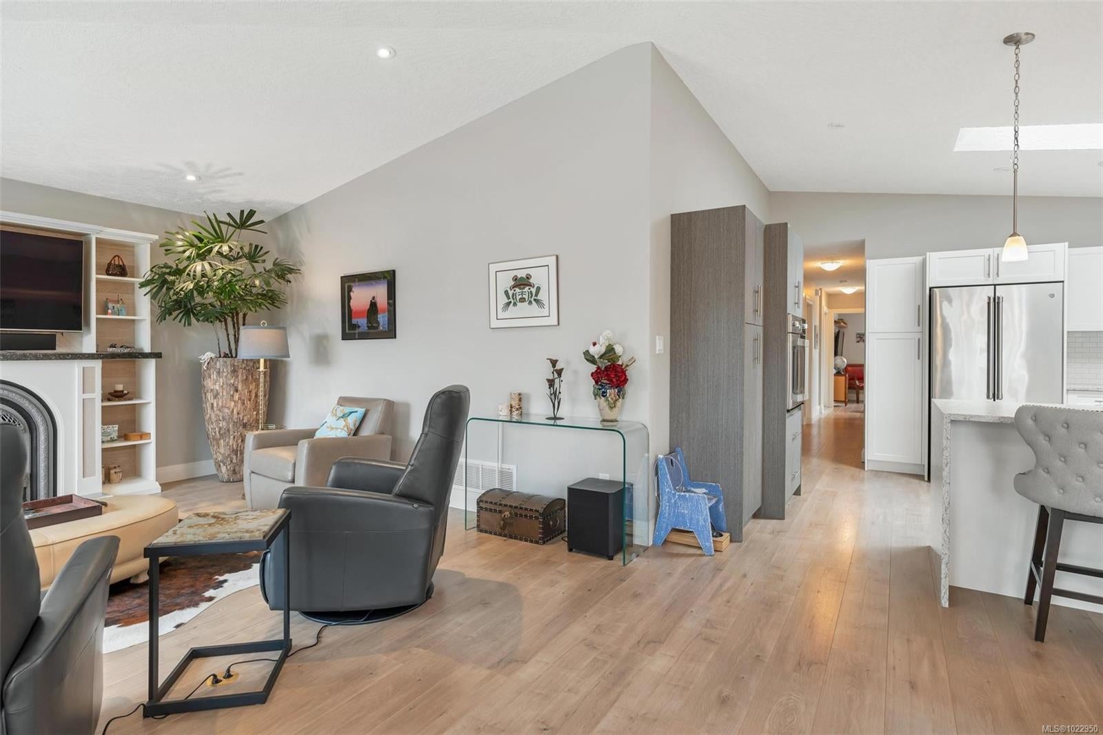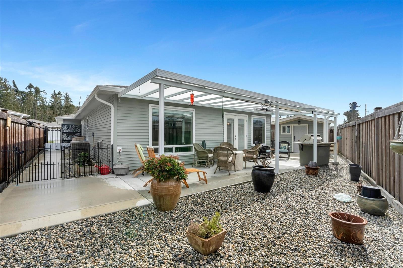 90 years remain on the head lease, expiring in 2115—exceptional value in a great adult-oriented community! Built on a foundation with a crawl space, this 2019 one-level home is immaculate and filled with upgrades. Enter through the custom mudroom with ceramic tile and wide-plank laminate floors flowing throughout. The gourmet kitchen features quartz counters, marble backsplash, skylight, stainless appliances, and peninsula. The extended great room, with huge west-facing windows, is bright, spacious, and inviting. The fully fenced, low-maintenance yard includes a covered patio with built-in heater and BBQ. Two bedrooms, a large den, and two bathrooms are tucked away, including a primary retreat with walk-in closet and 5-piece ensuite. Additional upgrades: heat pump, propane fireplace, induction range, custom vanities, epoxy garage floor, and shed. Too many to list—this home will impress the most discerning buyer!